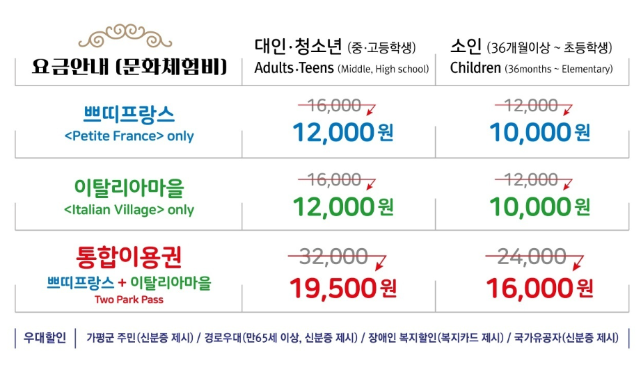 쁘띠프랑스는 오전 9시에서 오후6시까지 운영합니다.